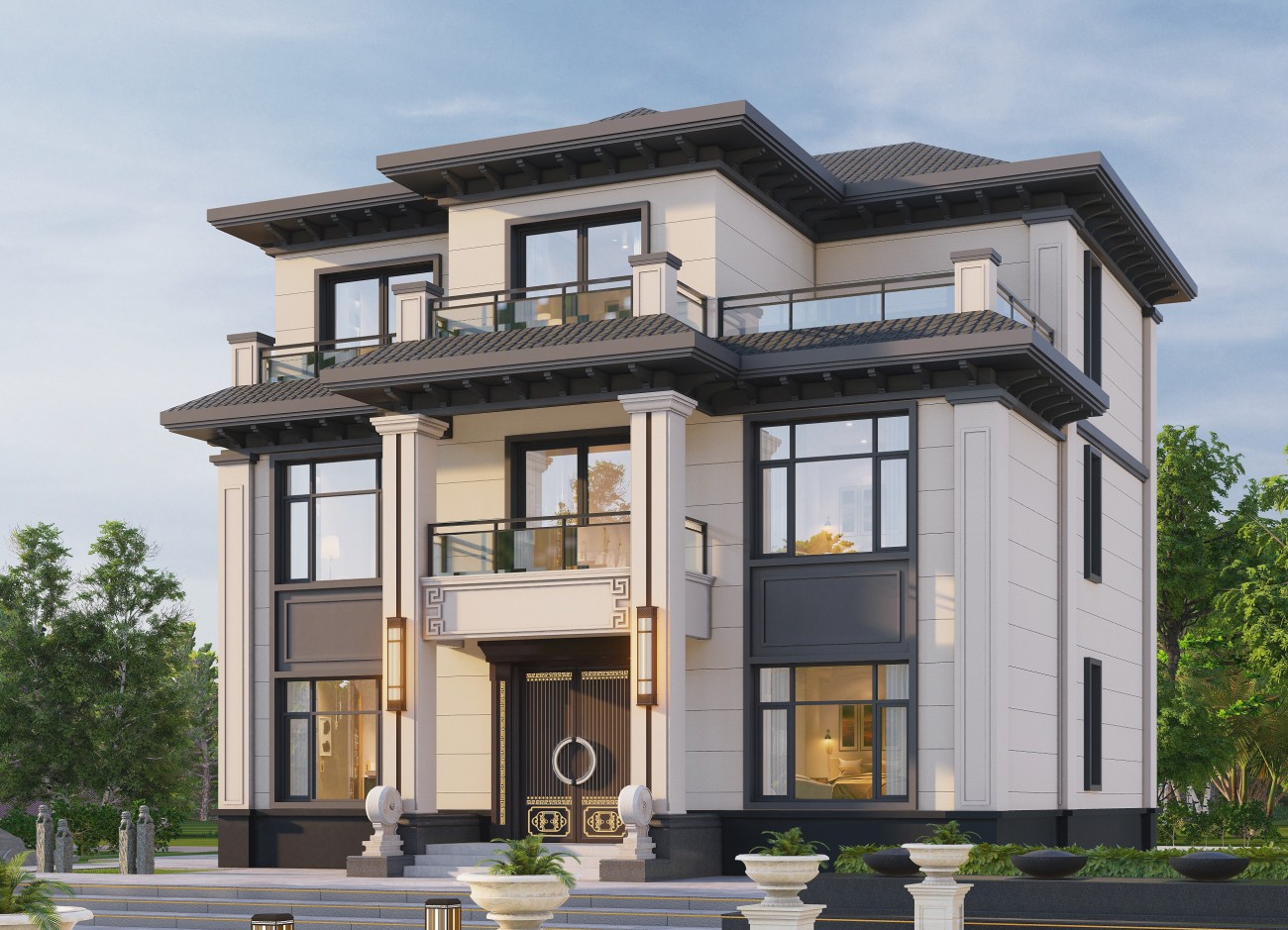 镇江17 三层新中式(10x12米)-【易设计】